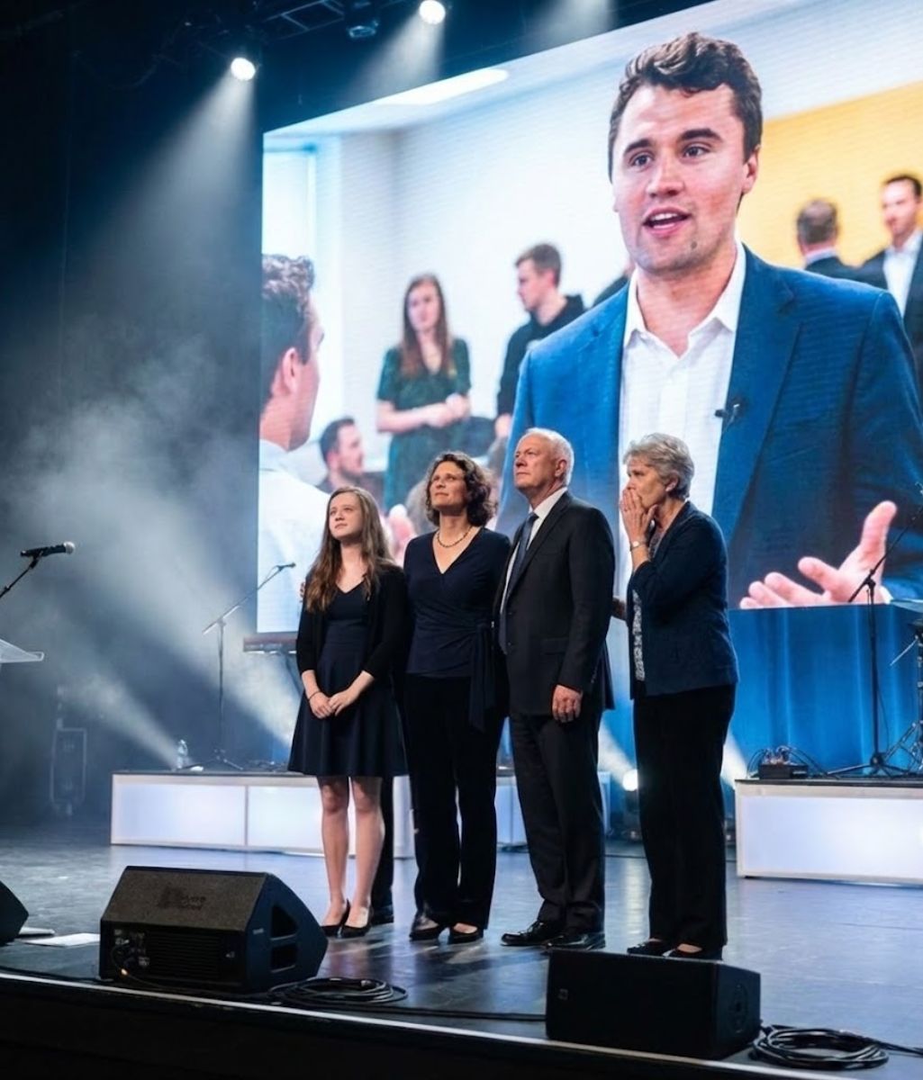 Inside a quiet auditorium on the edge of Arlington Heights, hundreds gathered last night for a memorial event honoring the late Charlie Kirk, whose impact on American political and faith communities continues to echo long after his passing. But even those closest to him — his wife Erika, his parents, his siblings, and the Turning Point family — could not have prepared for the moment that unfolded when the lights went down.