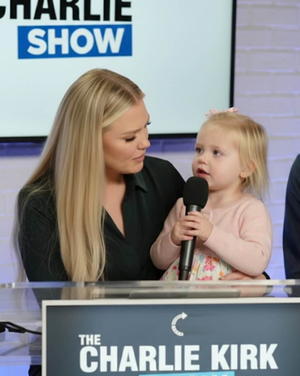 It was a moment so gentle, so unguarded, that even time itself seemed to pause. In a softly lit room filled with family and close friends, Erika Kirk stood holding the hand of her three-year-old daughter, the child of the late Charlie Kirk. The gathering was meant to be one of quiet remembrance — a time to share memories, to speak of the man whose fire and faith had touched so many lives. No one expected that the most powerful words of the day would come from a voice so small.