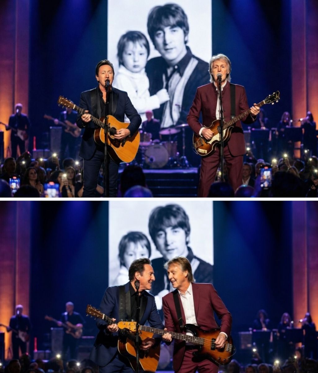 The atmosphere inside the Grammy venue that evening carried an unmistakable weight of history and tenderness. As the familiar piano chords of “Hey Jude” filled the air, audiences watched two men whose lives have been forever linked through joy, sorrow, and extraordinary creativity come together in a moment of genuine connection. Paul, known for his warm stage presence and ability to connect with listeners on a personal level, showed clear signs of deep emotion throughout the performance. His longtime friend, who has been close to the inner circle of the band for many years, later confirmed that this was far more than a simple musical collaboration. It represented Paul’s quiet, heartfelt way of honoring the memory of John Lennon while extending a hand of continued support and affection to Julian, who has carried his own complex journey in the shadow of his famous father.