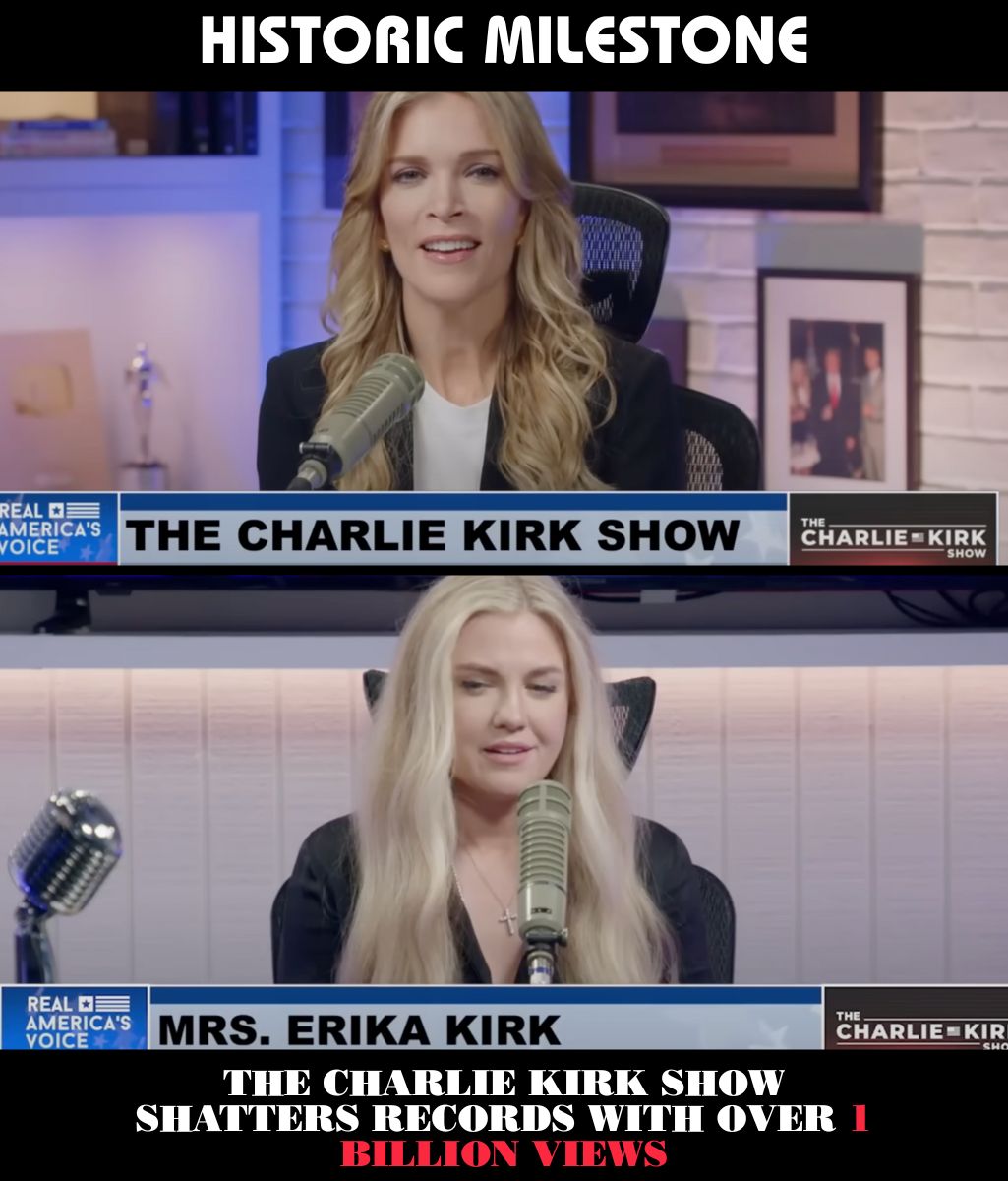 In a moment that has left the media world reeling, The Charlie Kirk Show has achieved what few believed possible — its very first episode, featuring Megyn Kelly and Erika Kirk, has officially surpassed 1 billion views worldwide. The figure, confirmed across multiple platforms, marks one of the fastest and most astonishing rises in digital broadcasting history.