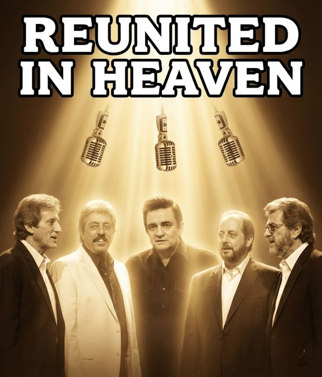 As the first chords rang out, archival vocals of Harold Reid — the legendary bass, whose voice could shake the pews of any church — boomed through the speakers. Seconds later, Lew DeWitt’s tender tenor floated in, clear and bright, wrapping around the melody like a whisper from heaven. And then, suddenly, unmistakably, Johnny Cash’s gravel cut through it all — deep, raw, and full of fire.