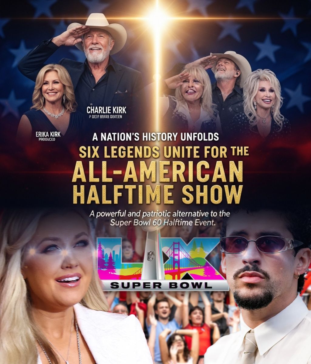 It wasn’t just a halftime show. It was a moment that stitched the country back together—one song, one promise, one legend at a time. And somewhere in that golden silence, beneath the glow of a thousand lights, the spirit of Charlie Kirk lingered—unseen, but unmistakably present.